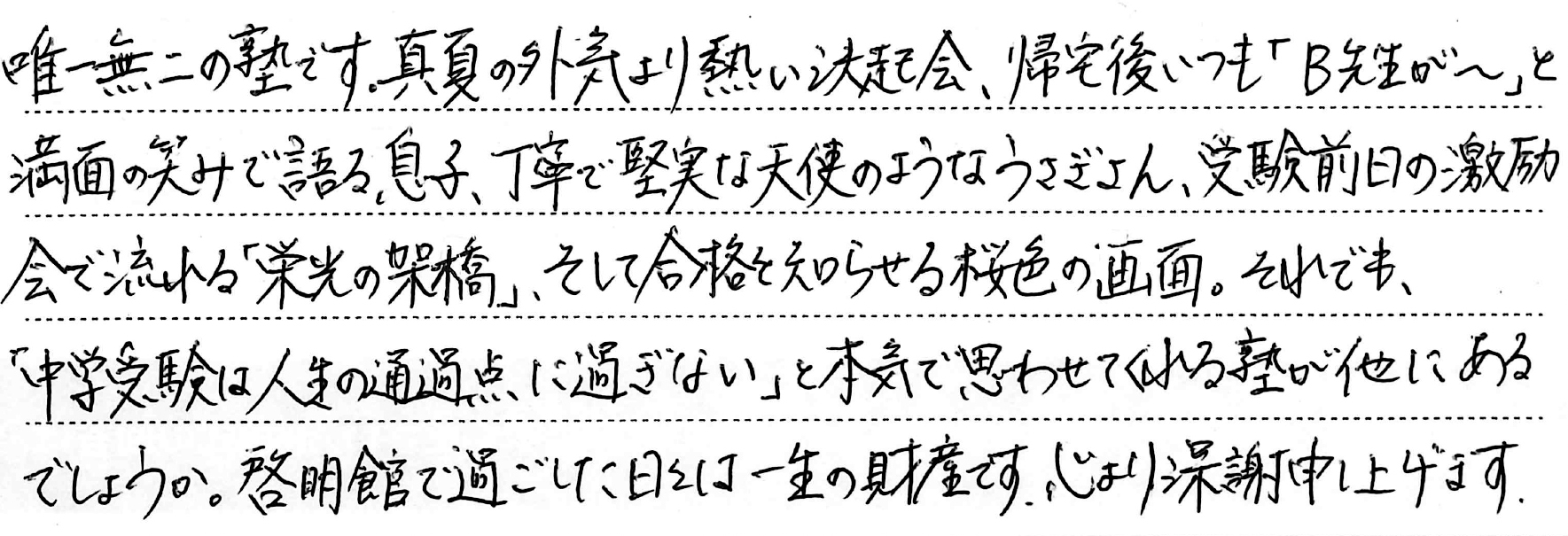 - お子さまの受験期で一番思い出に残っていること。(1)