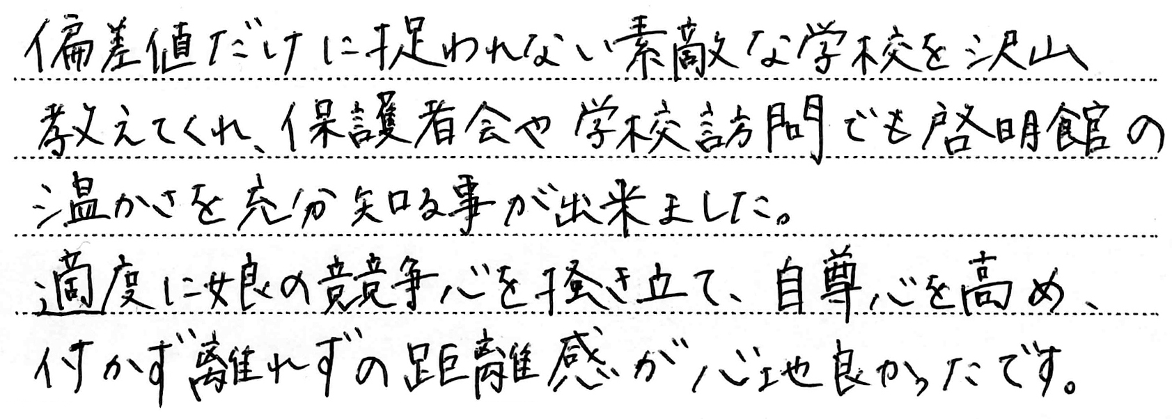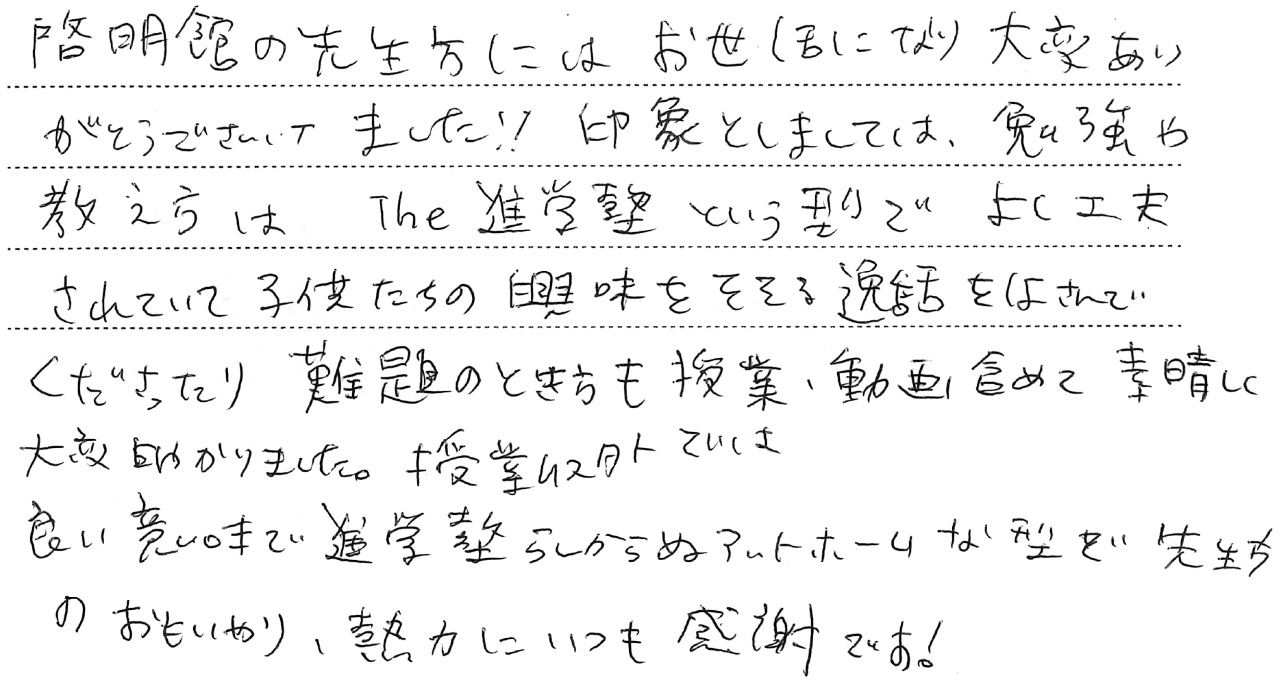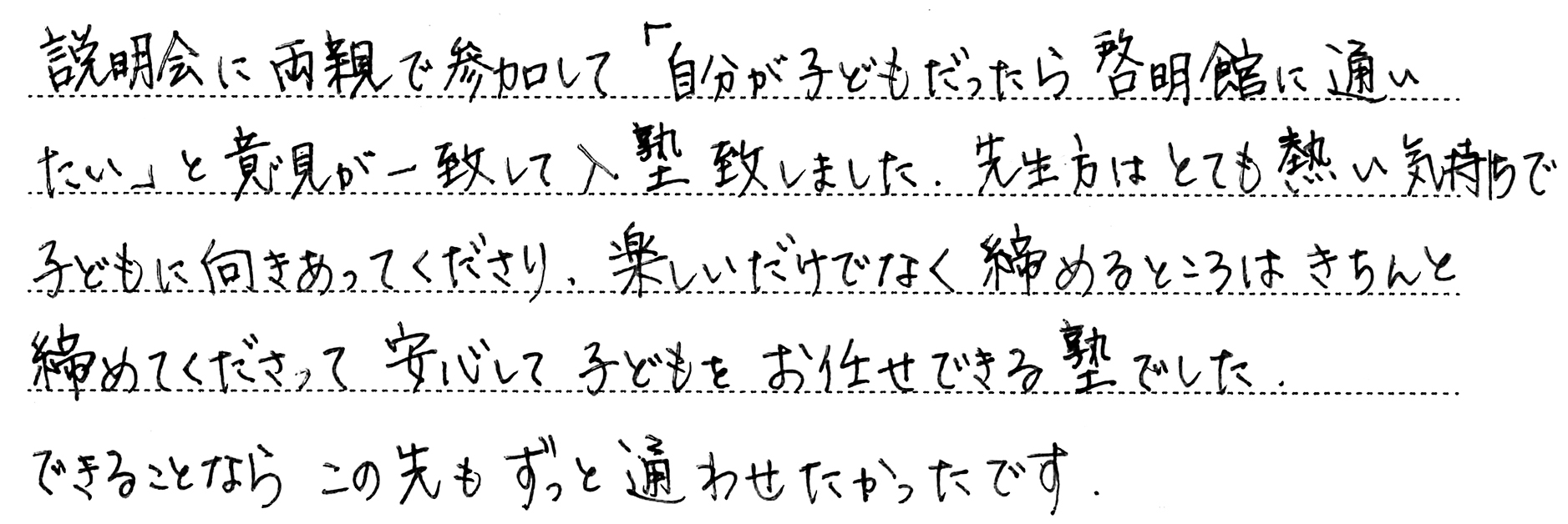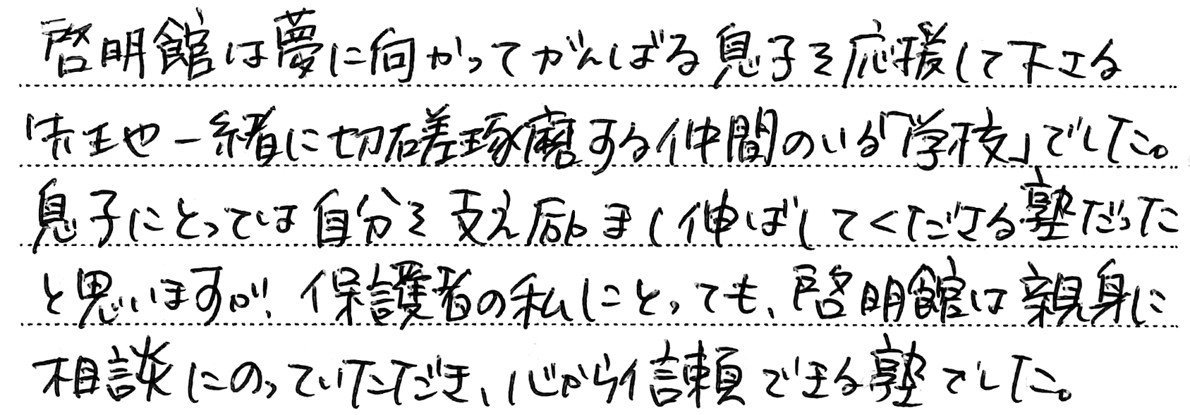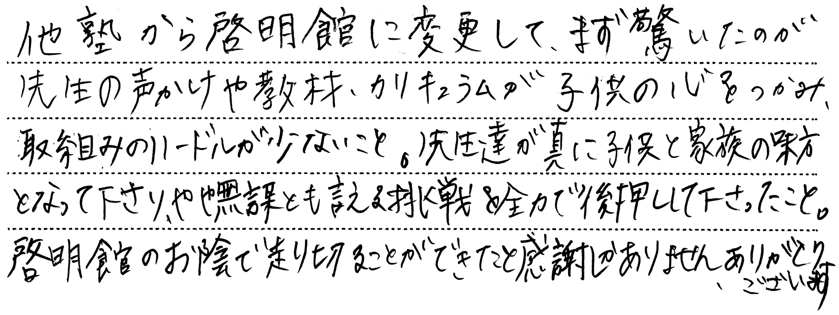 ホーム > 保護者からのメッセージ > Q. 啓明館は、保護者の皆様にとってどんな印象の塾でしたか?(7)