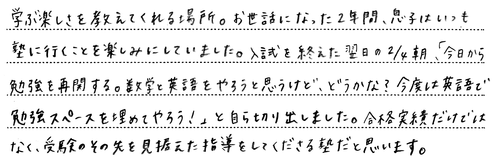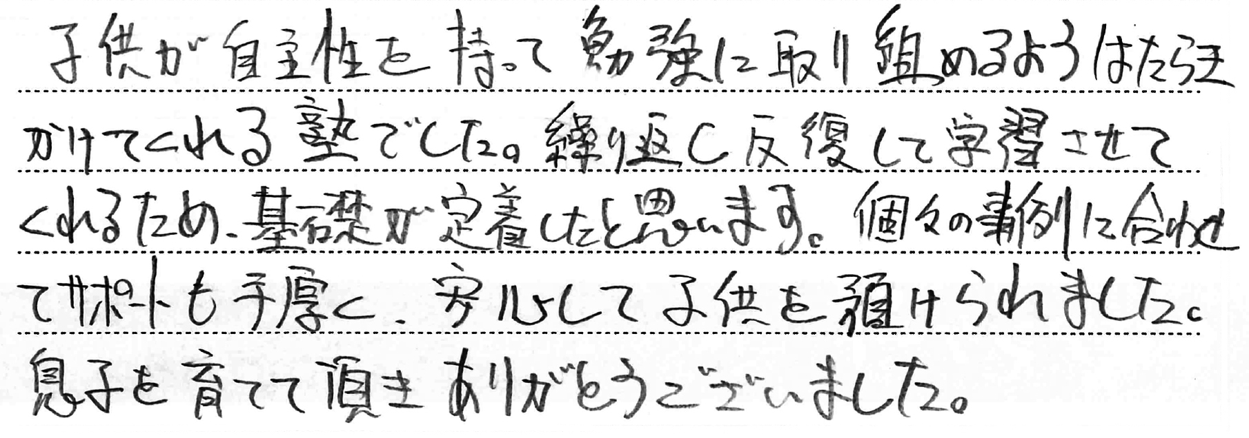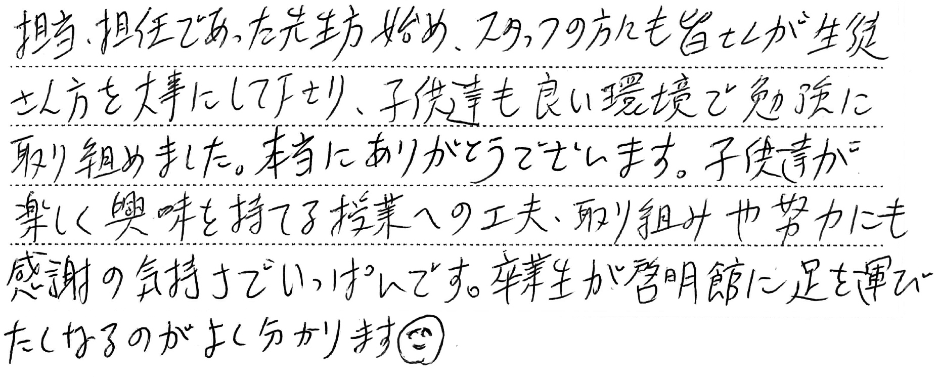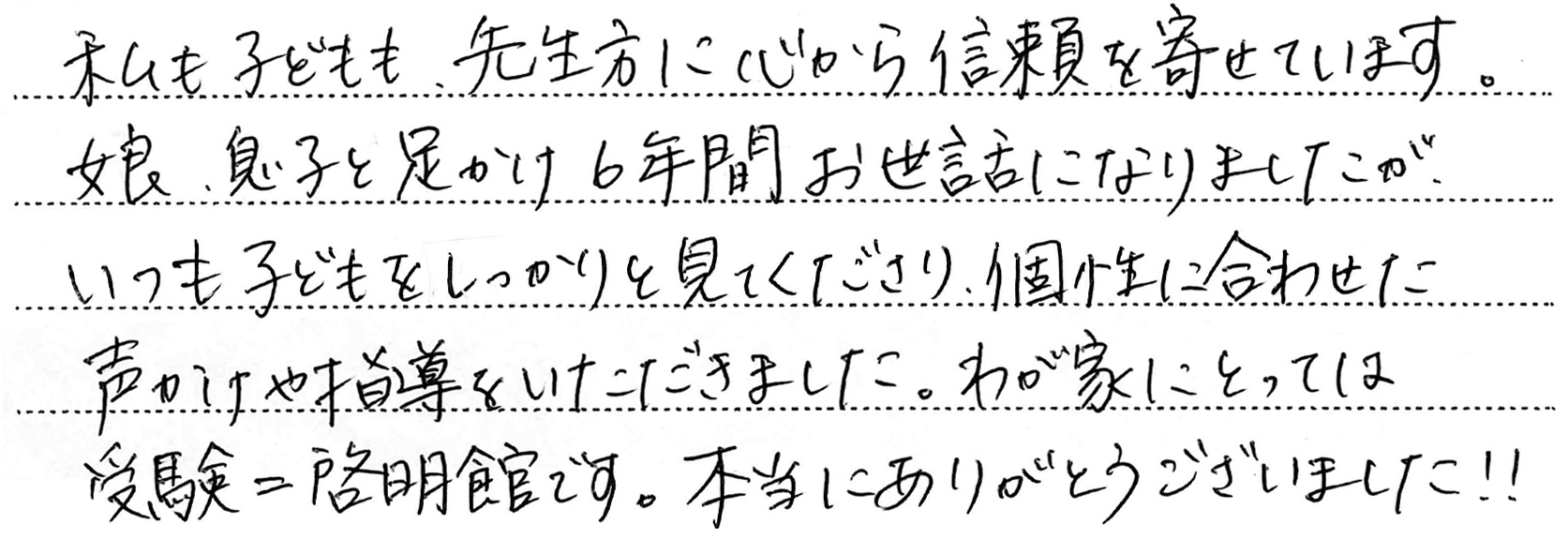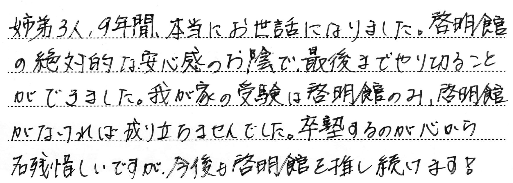 ホーム > 保護者からのメッセージ > Q. 啓明館は、保護者の皆様にとってどんな印象の塾でしたか?(7)
