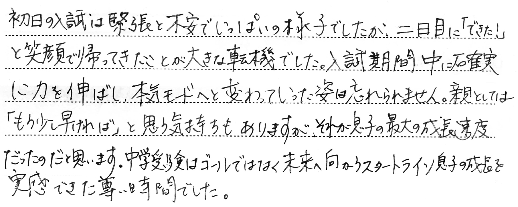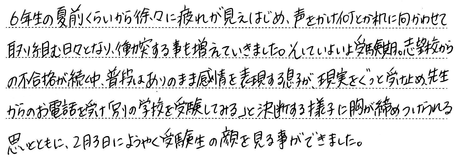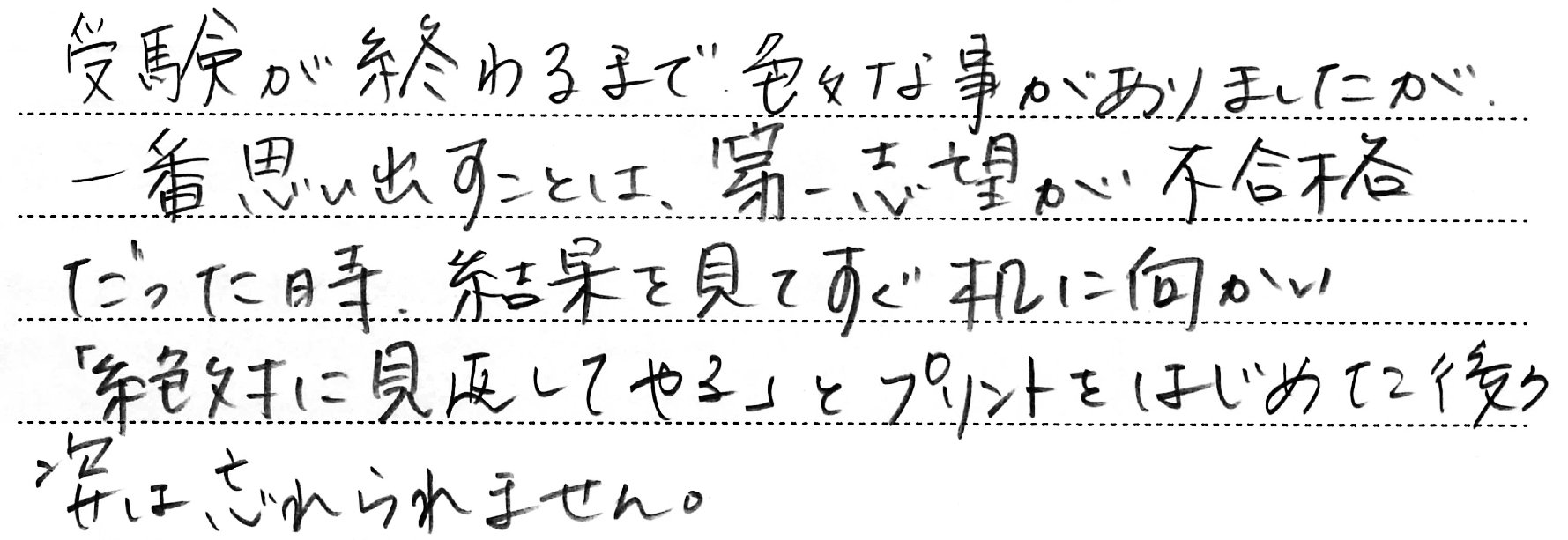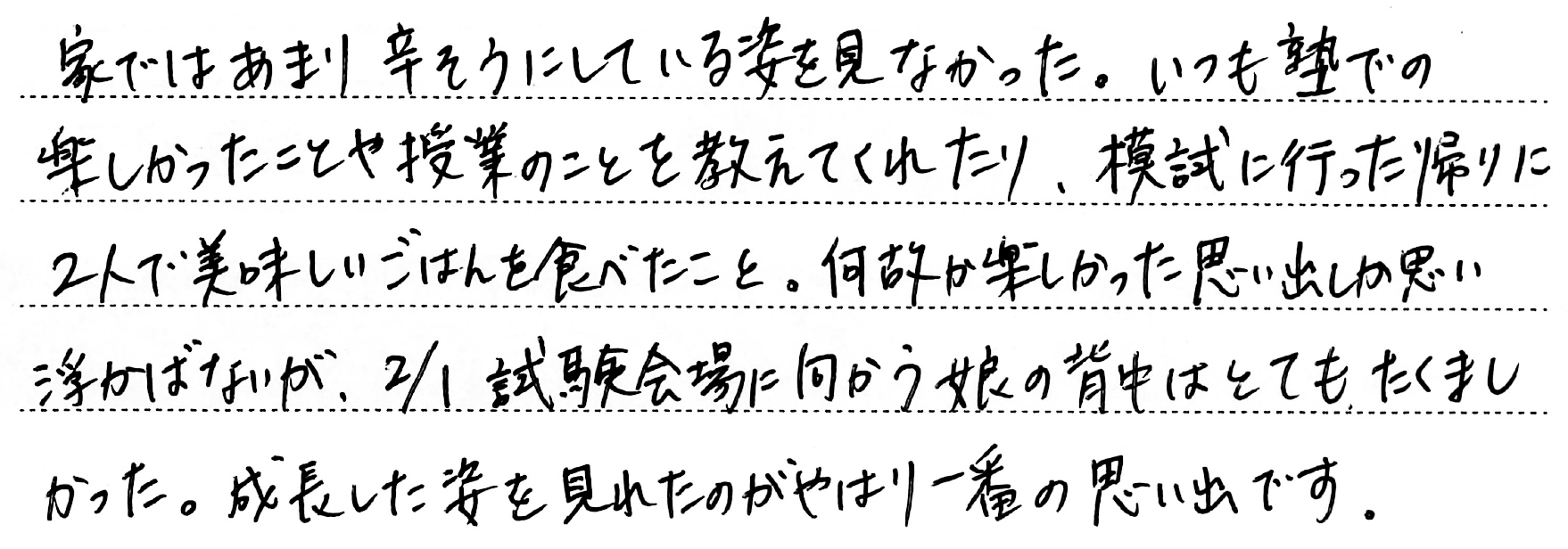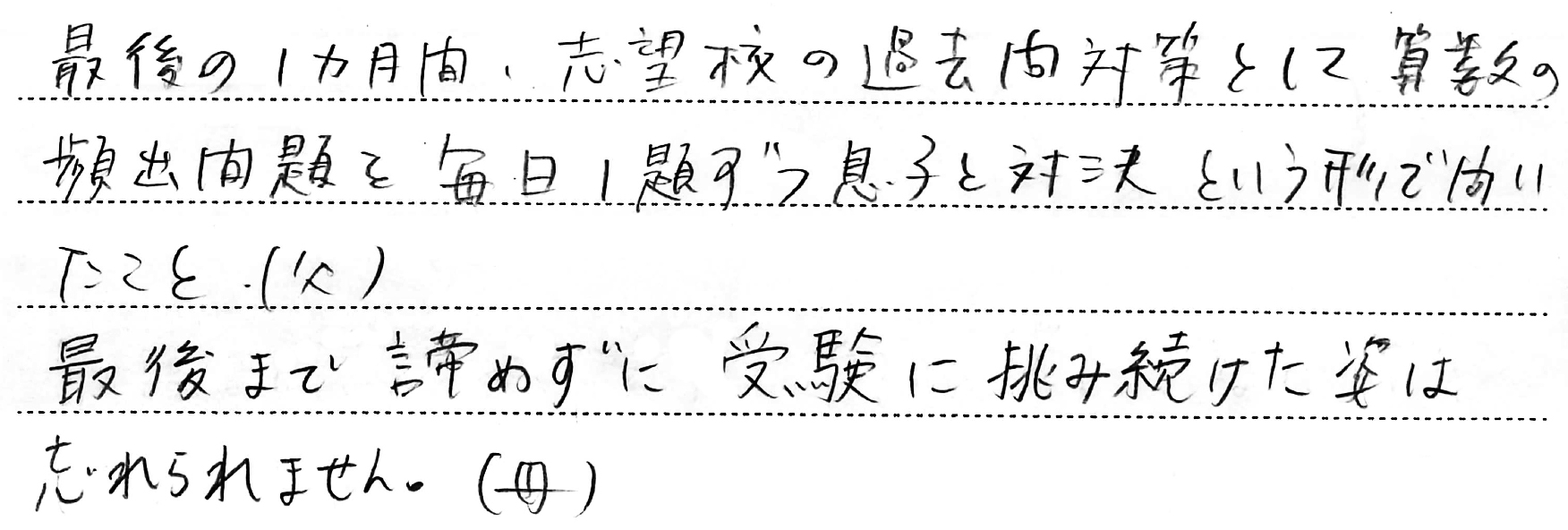 ホーム > 保護者からのメッセージ > Q. お子さまの受験期で一番思い出に残っていること。(5)