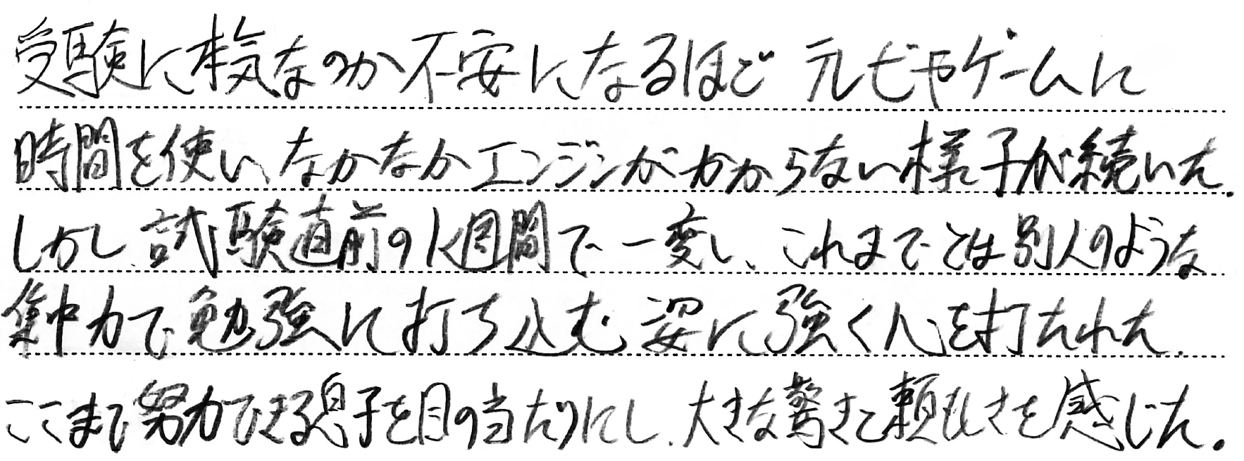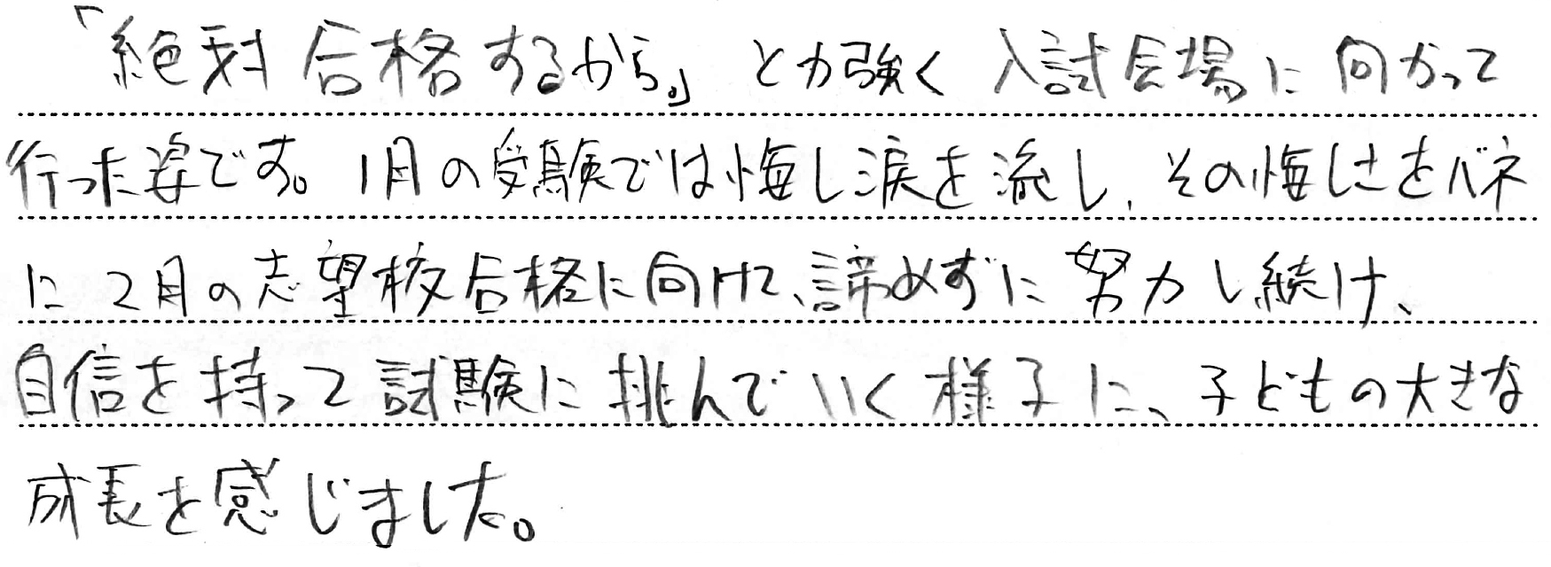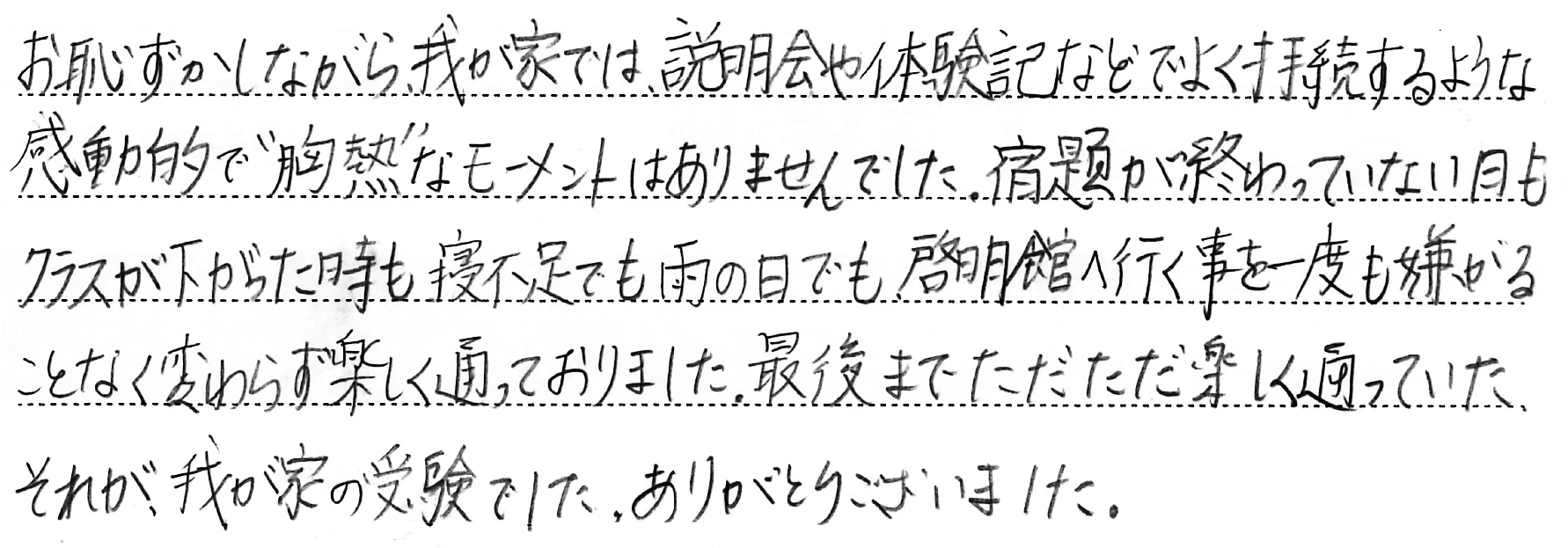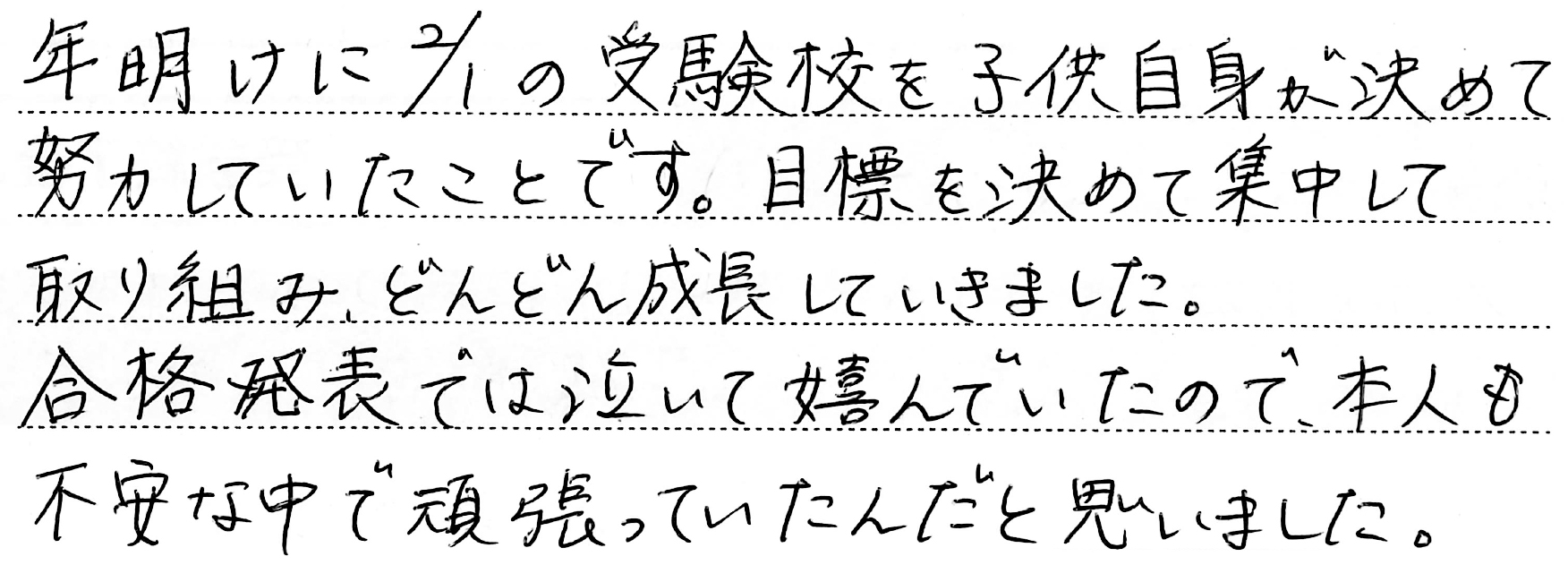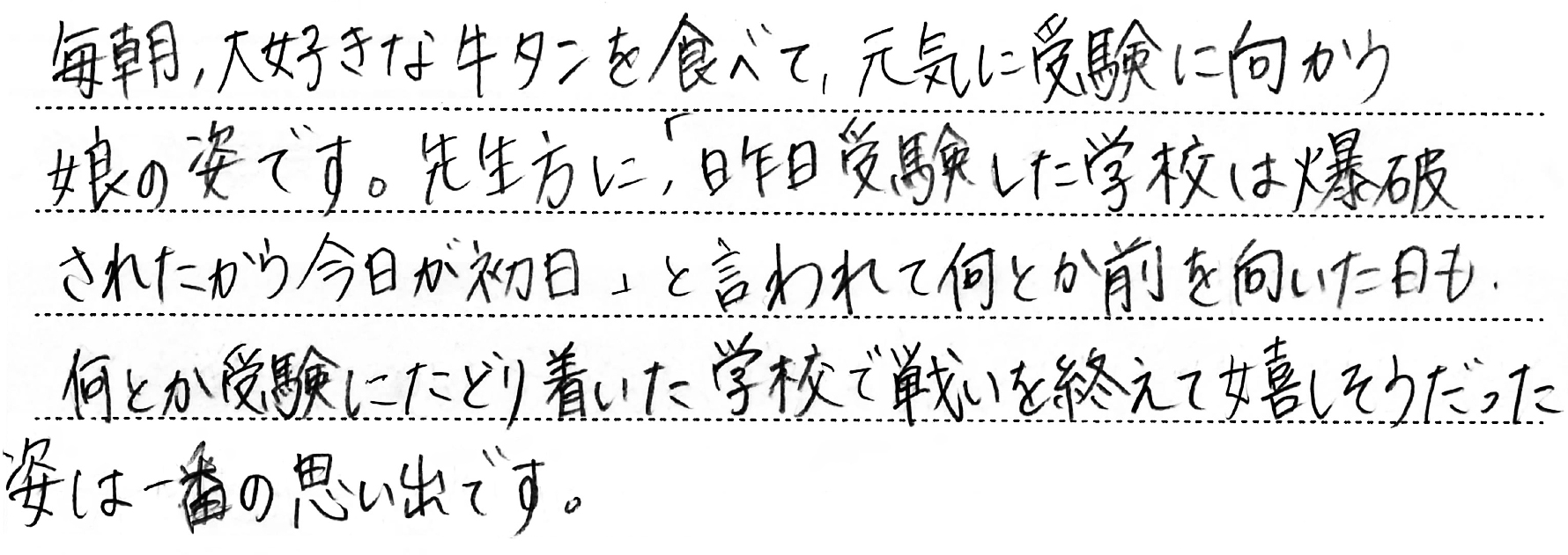 ホーム > 保護者からのメッセージ > Q. お子さまの受験期で一番思い出に残っていること。(5)