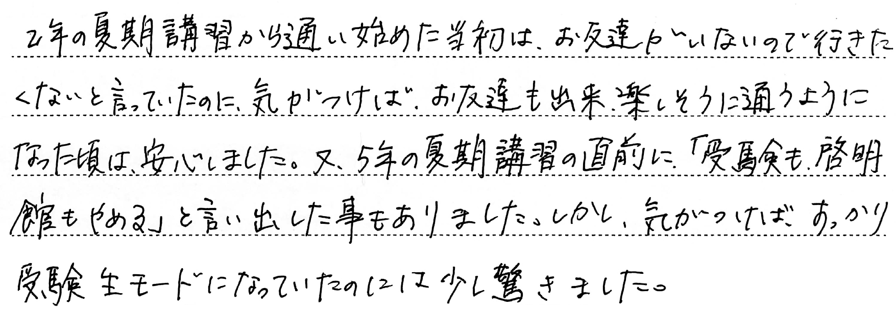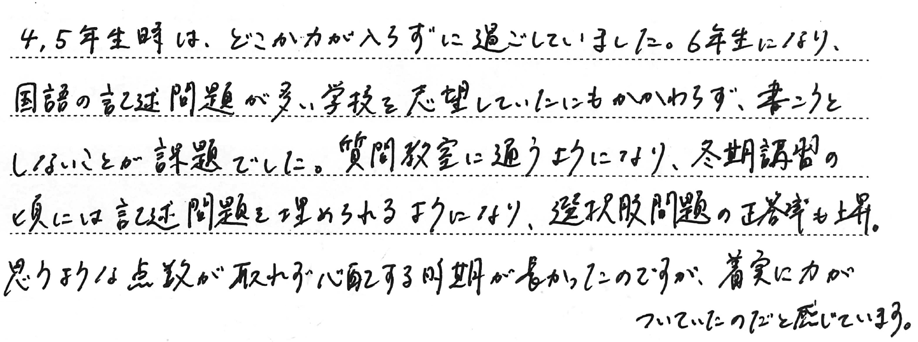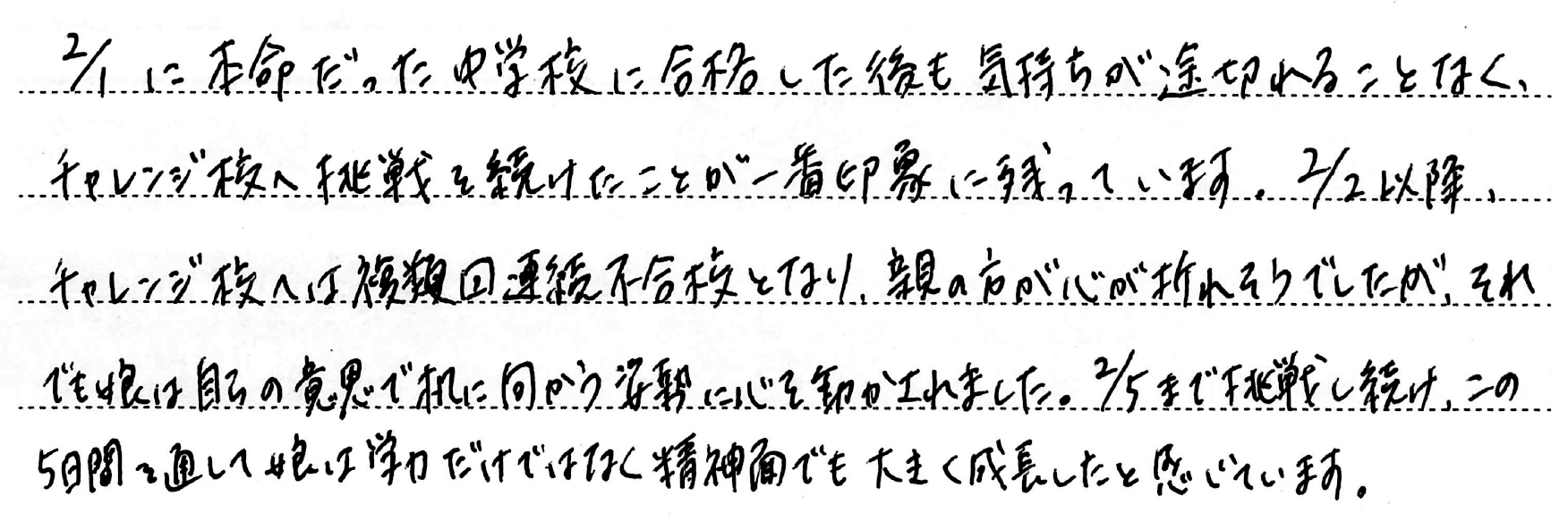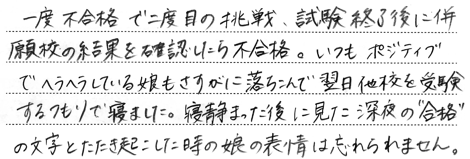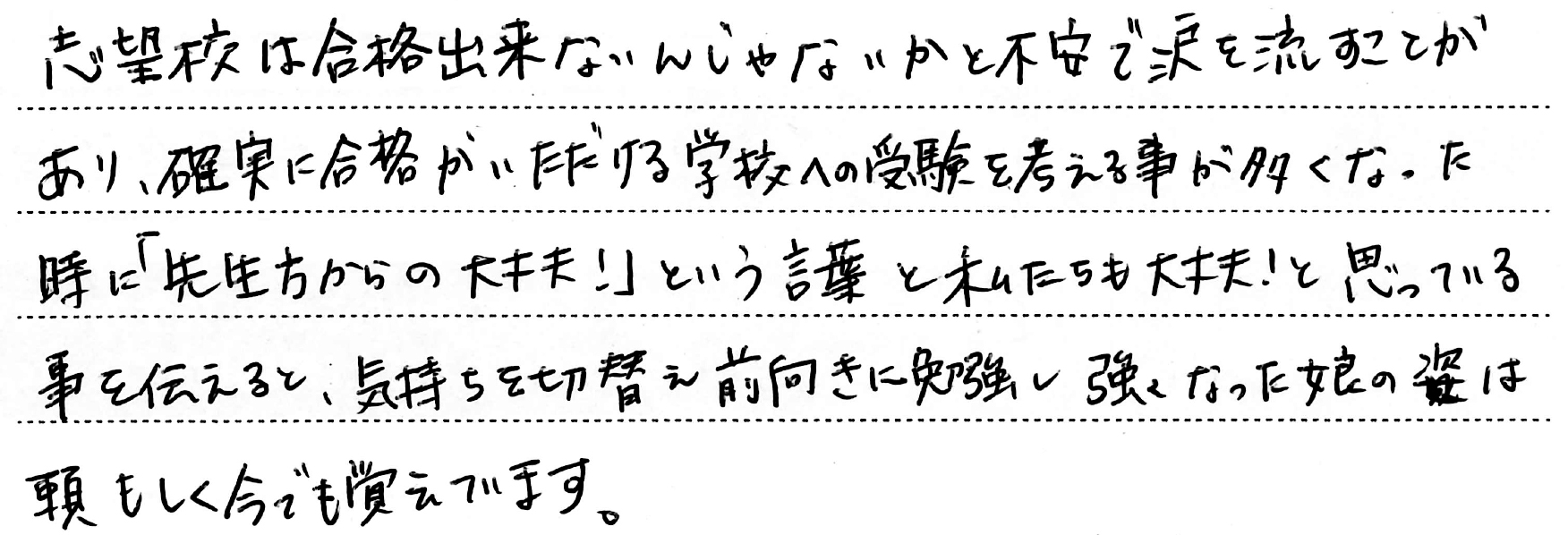 ホーム > 保護者からのメッセージ > Q. お子さまの受験期で一番思い出に残っていること。(5)
