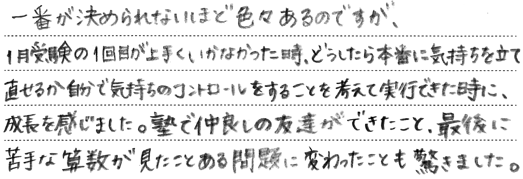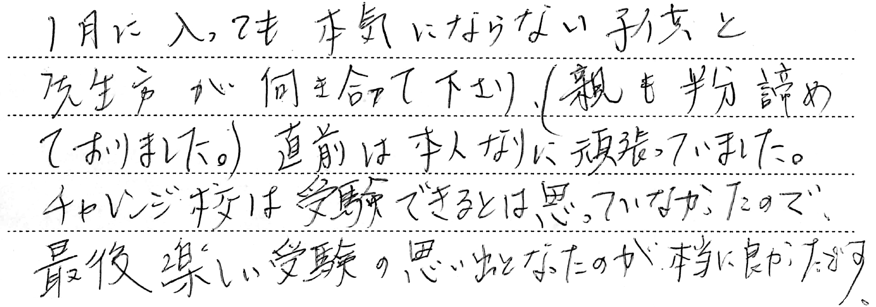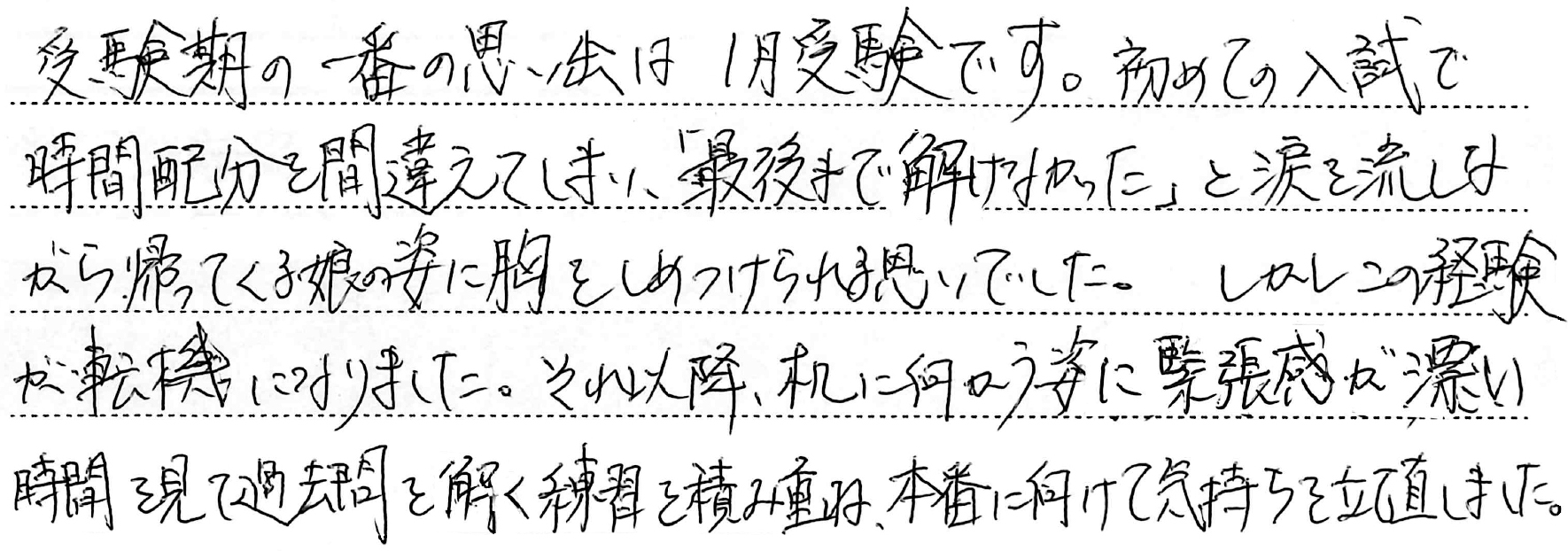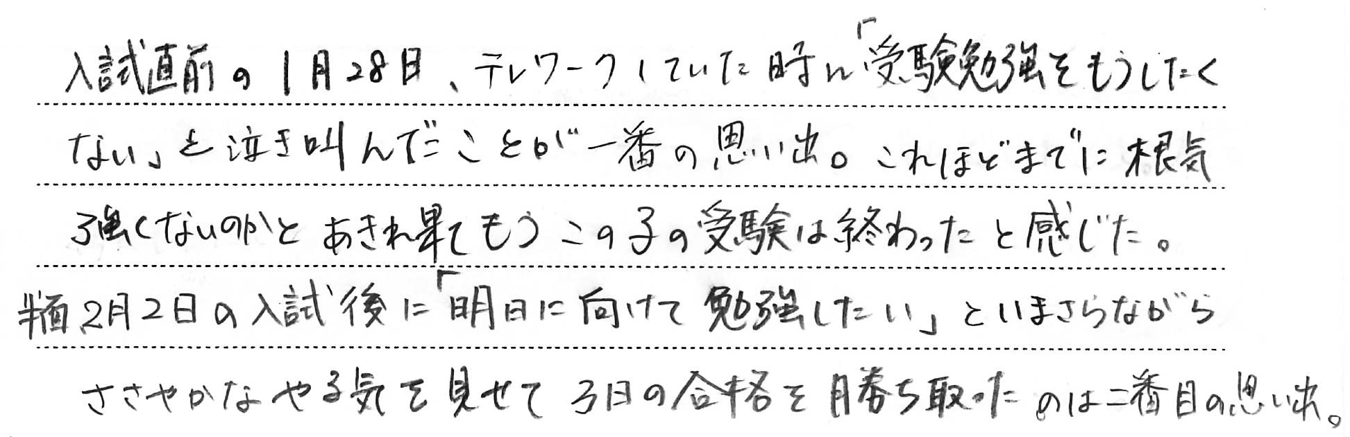 - お子さまの受験期で一番思い出に残っていること。(1)