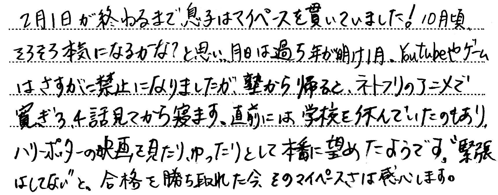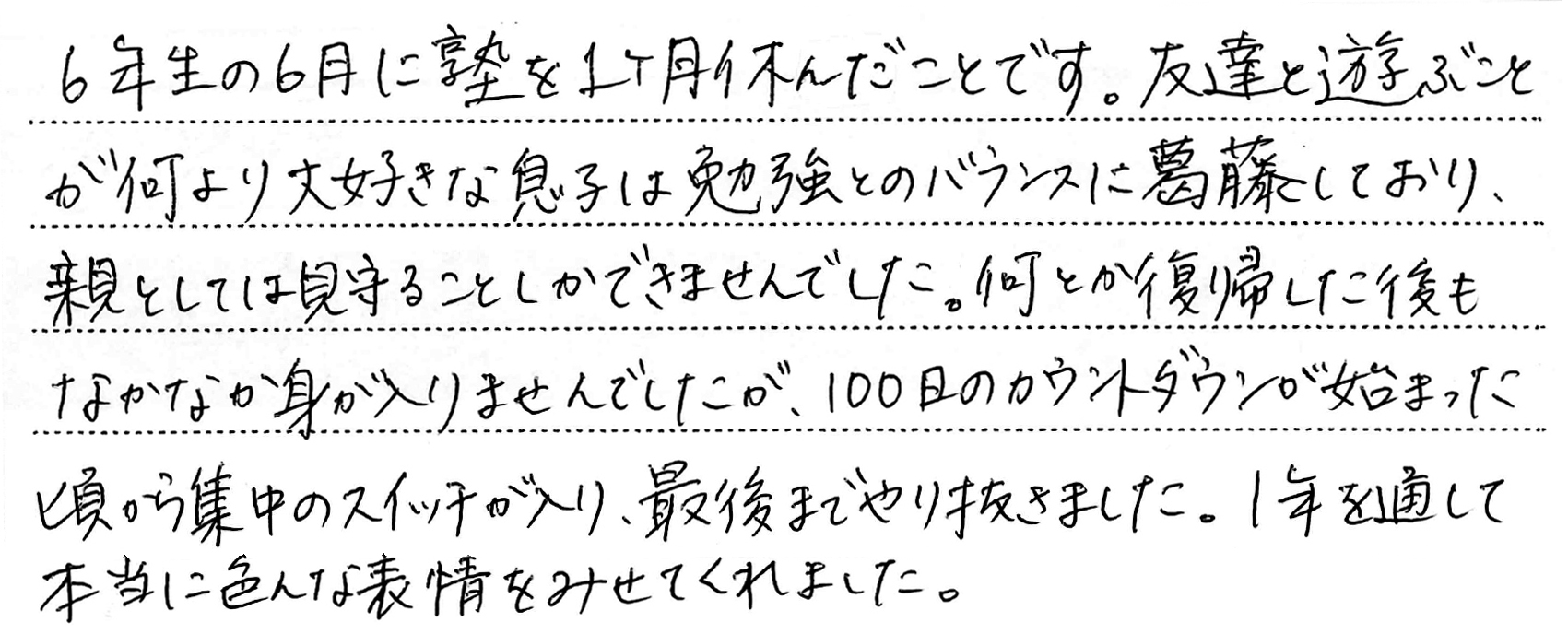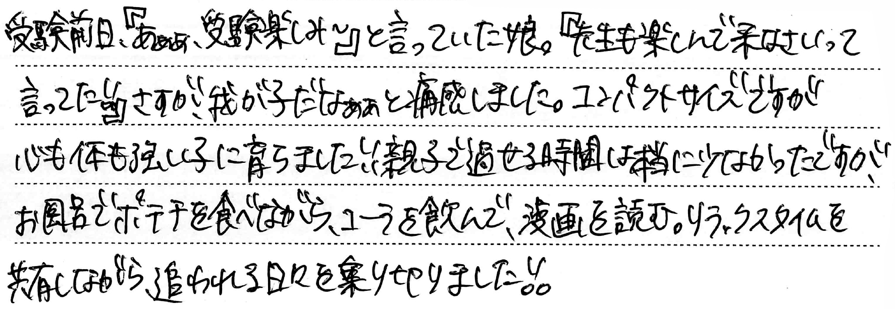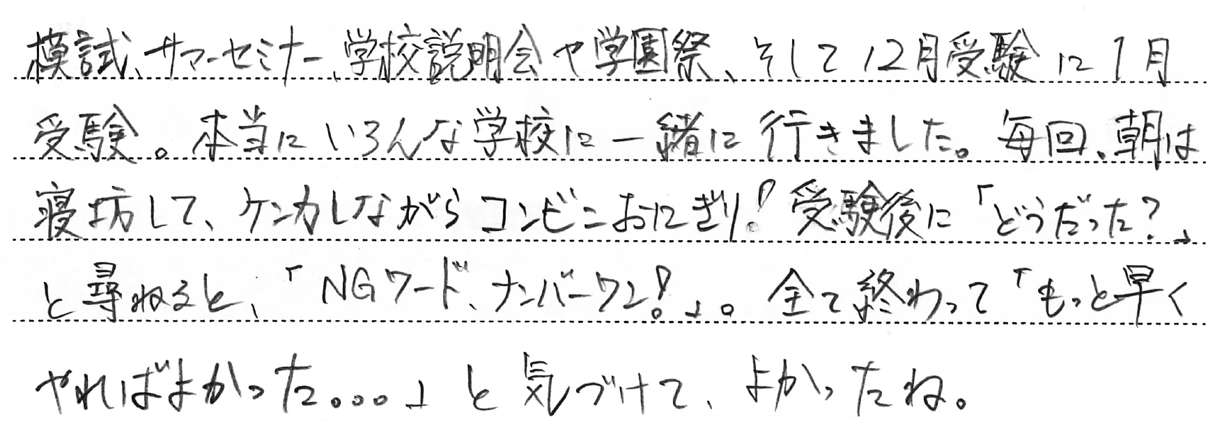 - お子さまの受験期で一番思い出に残っていること。(1)